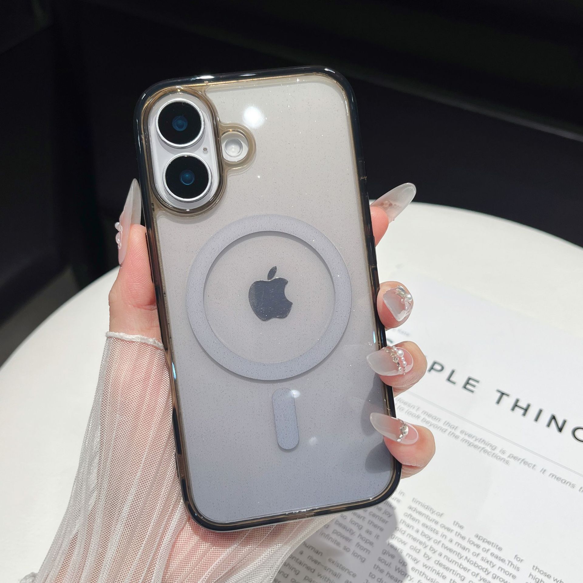 Suitable for Apple 17Promax Personalized Glitter Iphone16 Mobile Phone Case Magnetic Suction 15 Transparent Groove 14 Anti-Fall Female
